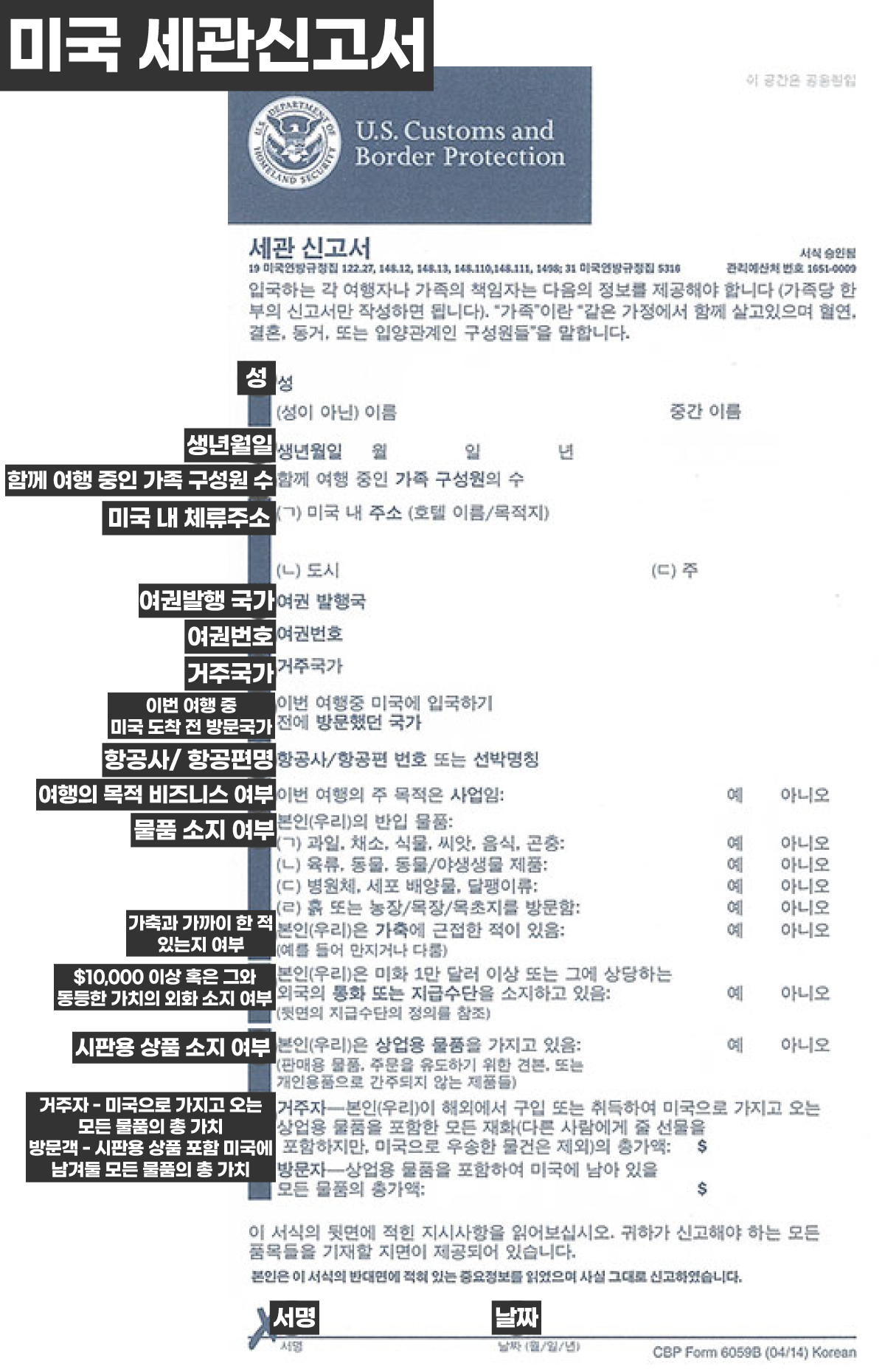 출입국 신고서 작성법